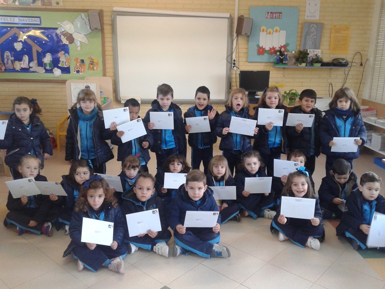 El pasado viernes 18, los niños de 4º de Educación Infantil acompañados por nuestras "seños", acudimos a las oficinas de correos de nuestra ciudad, a depositar en el buzón una postal navideña, hecha por nosotros en clase, para felicitar a nuestras familias. Esperamos muy ilusionados que todas las felicitaciones lleguen a su destino, ya que será toda una sorpresa para nuestros papis.